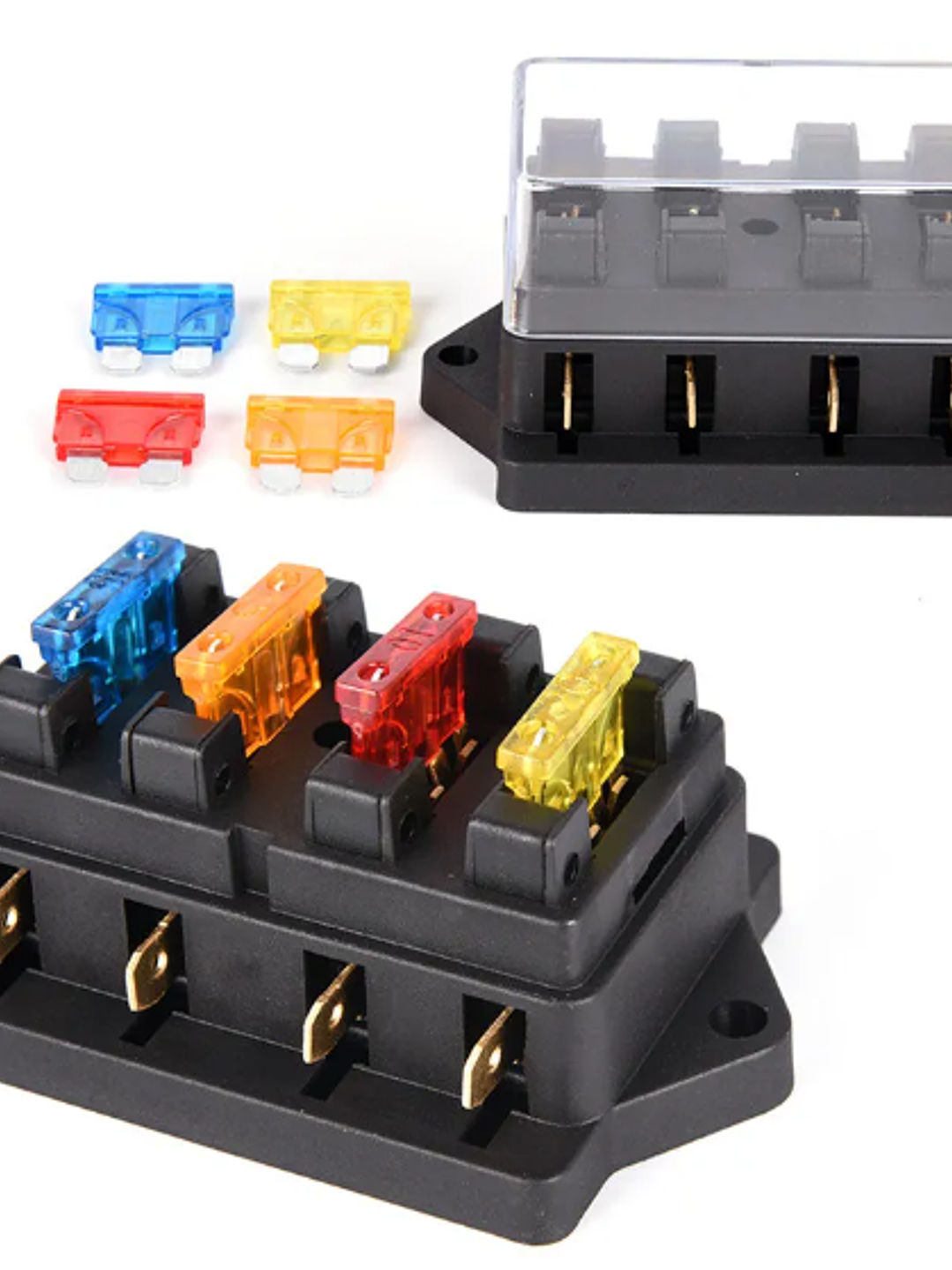 Garantiza la longevidad y la confiabilidad de tus circuitos eléctricos: ¡ordena nuestra Caja para 4 fusibles ahora y experimenta la tranquilidad que brinda una protección superior.