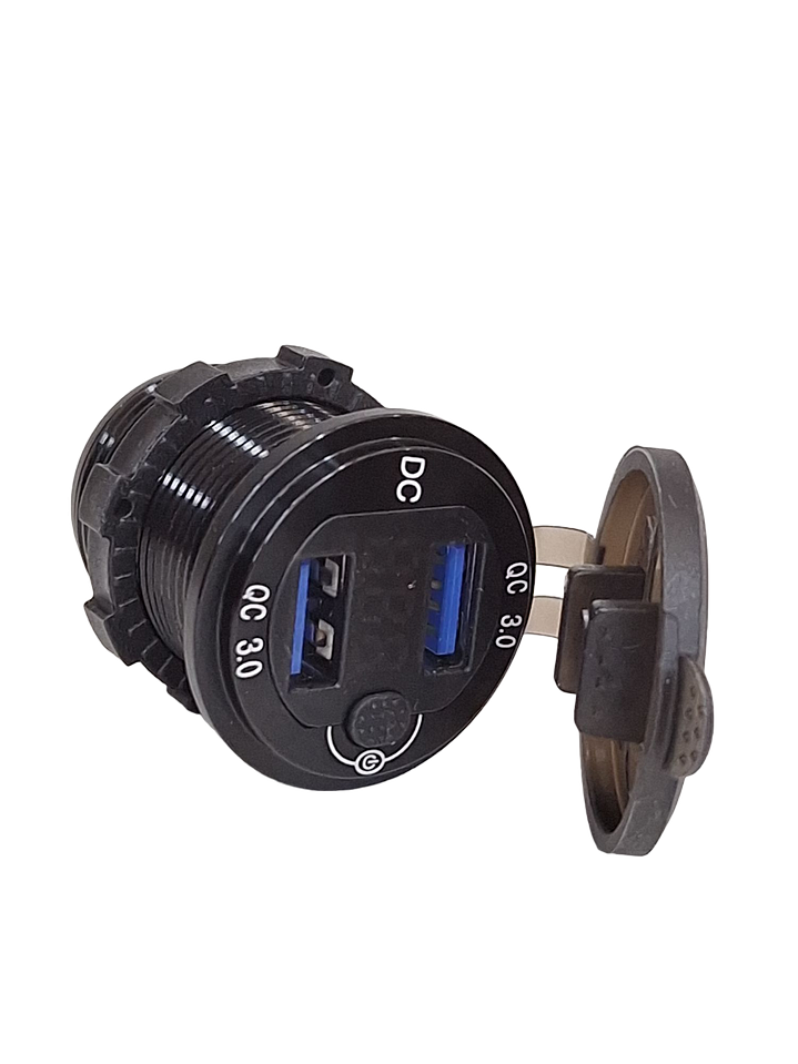 El Cargador USB con Voltímetro Redondo de Total Campers es el complemento perfecto para tu vehículo. Fabricado con materiales de alta calidad y tecnología avanzada, este cargador te permite cargar tus dispositivos electrónicos de manera rápida y segura mientras estás en movimiento.